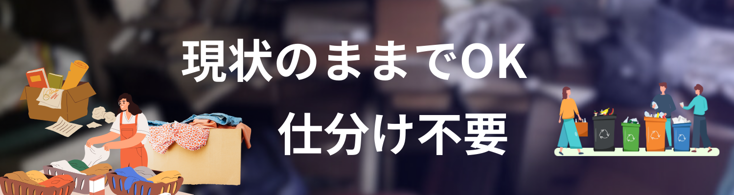 遠方に住んでいらっしゃる等の理由でお立合いが難しい場合も大丈夫です。生活していた状態からでも、ゴミ屋敷のようになっていてもおまかせください。ただしご依頼の内容によってはお立合いが必要になるケースもございますので、まずは詳細をご相談ください。